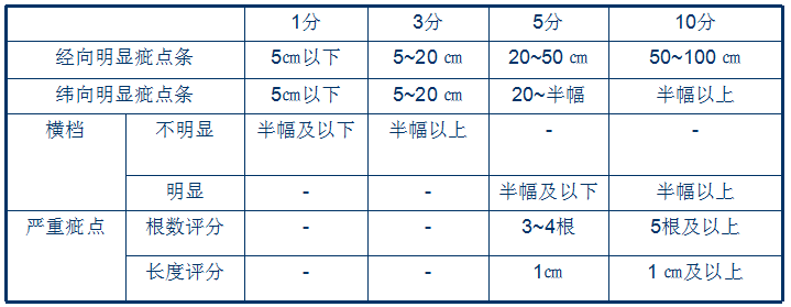 根據(jù)每米布評(píng)分的要求進(jìn)行評(píng)等