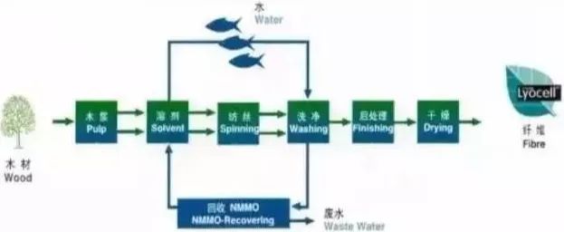 這種紡絲方法與常規(guī)粘膠纖維的生產(chǎn)方法相比,最大的優(yōu)點(diǎn)是NMMO可直接溶解纖維素漿粕,紡絲原液的生產(chǎn)流程可以大大簡化,且NMMO的回收率可達(dá)到99%以上,生產(chǎn)過程幾乎不污染環(huán)境。