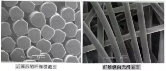 纖維內(nèi)外層結(jié)構(gòu)較均勻,纖維橫截面的皮芯層結(jié)構(gòu)沒有普通粘膠纖維明顯,截面形態(tài)趨于圓形或腰圓形,縱向較光滑,濕態(tài)下有較高強(qiáng)度和模量,吸濕性能優(yōu)異。