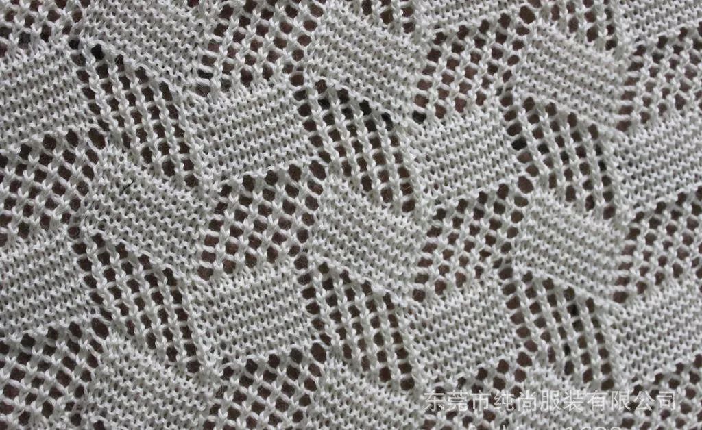(雙吊目)1X1羅紋,在衫身上也是直的一條一條,但沒有珠狀,故稱柳條,雙機(jī)板排針同四平;控制鍵全開,底左面右字碼密(放高),底右面左字碼松(放低或換一邊也可以),區(qū)別柳條字碼,要看是否條直,開針要開斜角,且針跟打花字碼靠。由于每一行紋路包括多行線圈,所以衫身闊度向擅長程度很大,生產(chǎn)速度比較慢,然而厚度和重量及豐滿手感,是其它組織不可達(dá)到的。