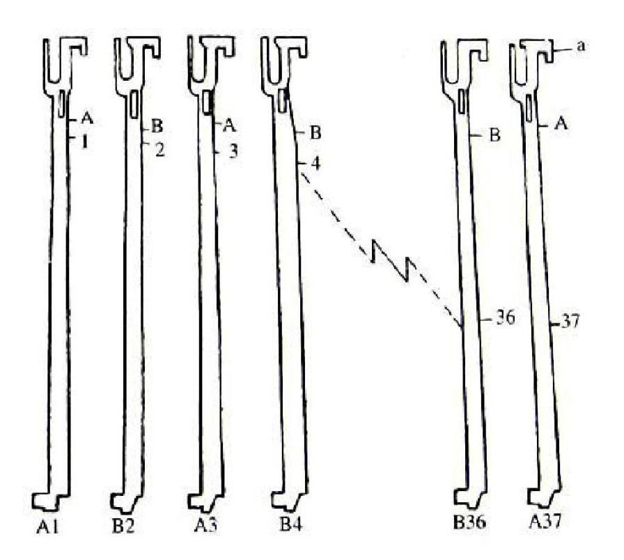 撥片式選針機構由發(fā)出選針花紋信息的選針元件投片、傳遞花紋信息的機件提花片以及執(zhí)行花紋信息的工作機件織針組成。一般來說,它屬二級選針機構,即編織與不編織。其工作原理是,花紋信息—撥片—提花片——織針編織或不編織。