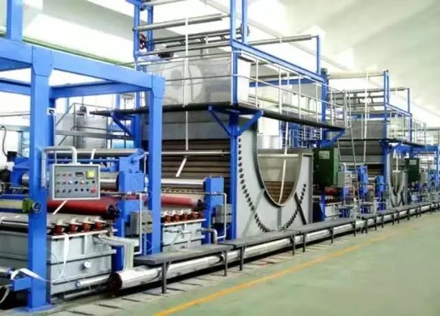 退漿是在松式、濕熱加工中進(jìn)行,使織物可以在退漿的同時充分收縮,從而獲得蓬松豐滿的仿毛風(fēng)格。中長化纖織物上漿料PVA為主要漿料,可以采用堿退漿或氧化劑退漿。堿退漿后織物手感稍粗硬,在同樣熱熔條件下染色得色稍深。也可以用洗滌劑退漿,退漿后的織物手感柔軟,彈性較好,拉幅容易。退漿水洗后在松式水洗機(jī)上再水洗,然后在松式烘干機(jī)上烘干。