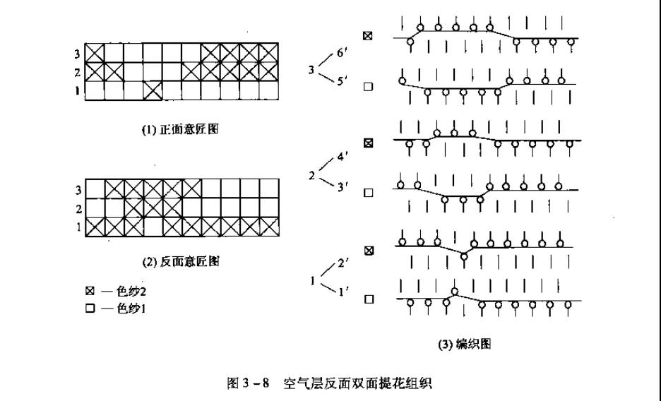 復(fù)合組織是由兩種或兩種以上的織物組織復(fù)合而成。它可以由不同的基本組織、不同的變化組織、不同的花色組織復(fù)合而成。復(fù)合組織可以根據(jù)各種組織的特性復(fù)合成所要求的組織結(jié)構(gòu)。羅紋組織與平針組織復(fù)合成羅紋空氣層組織,雙羅紋組織和平針組織復(fù)合而成雙羅紋空氣層組織。這類組織的織物緊密厚實(shí),彈性好,保暖性好橫向延伸性較小,尺寸穩(wěn)定性較好。若空氣層組織外層采用棉紗編織,內(nèi)襯高彈絲,是保暖內(nèi)衣的極好面料;若正反面采用不同類型的紗線編織,則尤其適合用作外衣面科。