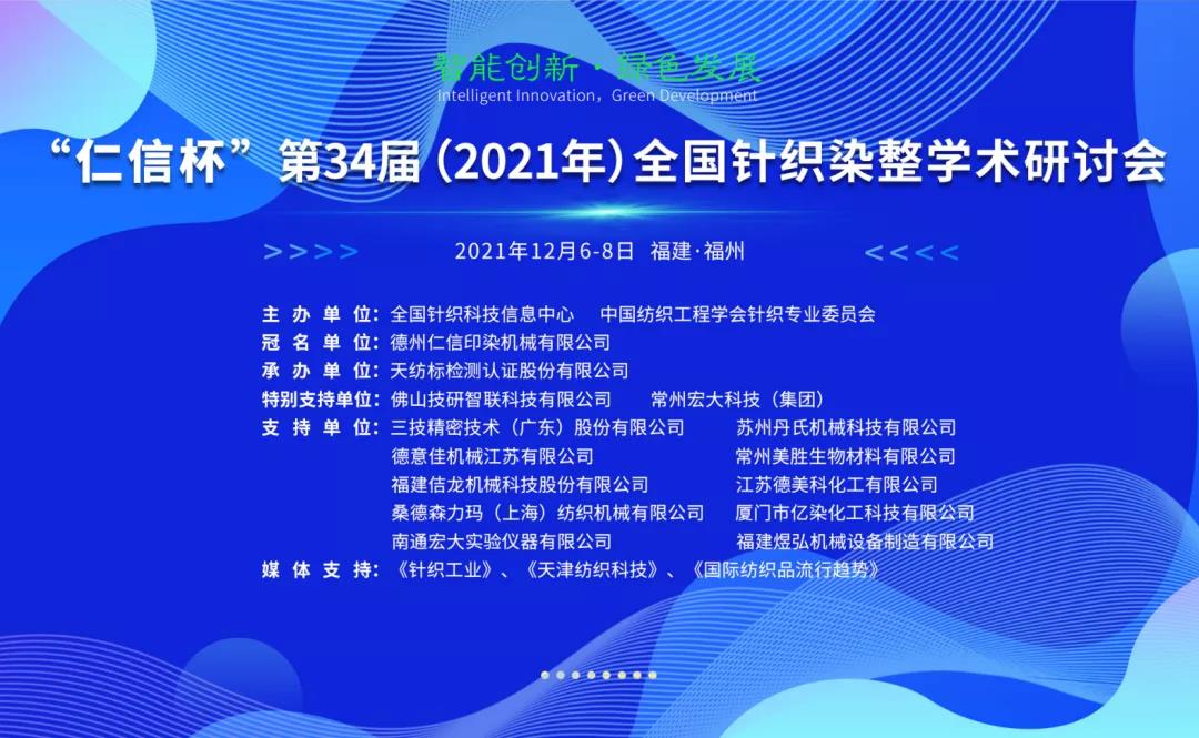 由全國針織科技信息中心和中國紡織工程學會針織專業(yè)委員會聯(lián)合主辦,天紡標檢測認證股份有限公司承辦,德州仁信印染機械有限公司冠名的“仁信杯第34屆(2021年)全國針織染整學術研討會”于2021年12月6-8日在福建省福州市圓滿落下帷幕。