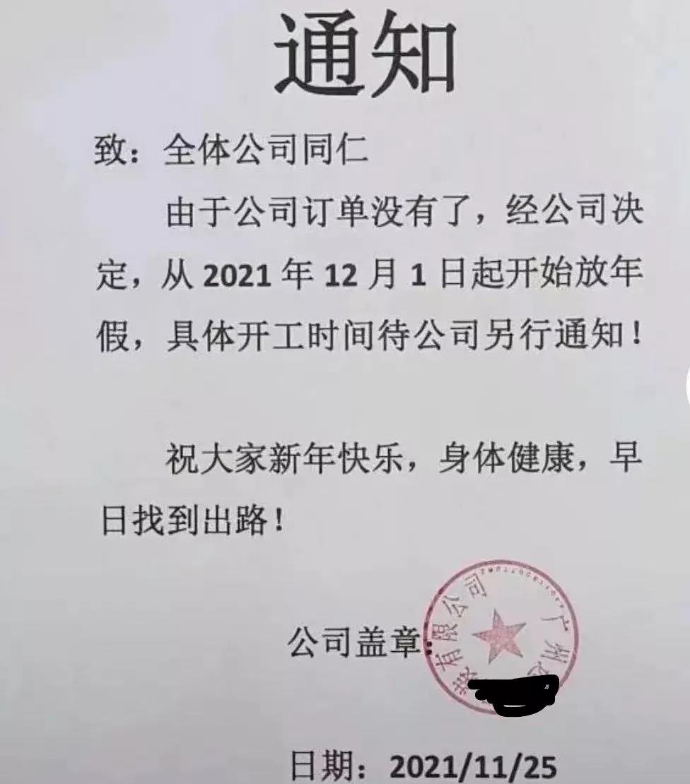 12月才剛開(kāi)始,近日,廣東一服裝廠家發(fā)布通知:放假!
