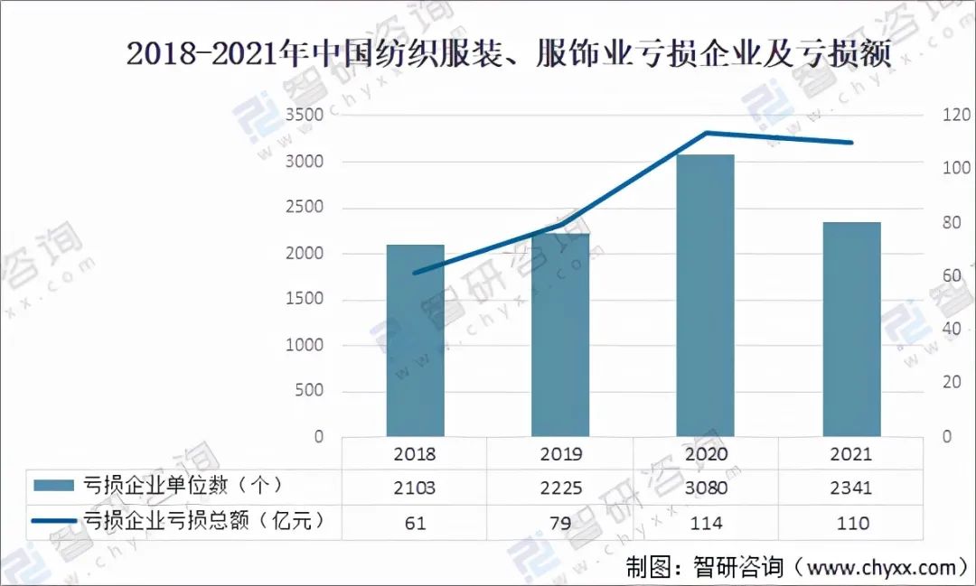 2018-2021年中國(guó)紡織服裝、服飾業(yè)虧損企業(yè)及虧損額