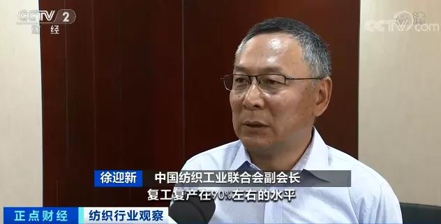 中國紡織工業(yè)聯(lián)合會副會長 徐迎新:我們國家的紡織服裝行業(yè)復工復產(chǎn)在90%左右的水平,很多都是處在滿負荷運營的狀態(tài)。