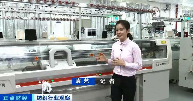 這是一臺生產(chǎn)毛織服飾的一體機,簡單來說它就是由一根紗直接就編織成了一件完整的毛衣,而傳統(tǒng)的機器它生產(chǎn)出來的是單片,比如說袖子或者是領口,它需要人工一針一線進行縫合,在袖口和衣身的連接處有明顯的縫合。而一體機生產(chǎn)出來的毛衣在這個位置非常平整,所以穿起來也會更加舒適,而生產(chǎn)這樣的一件毛衣,一體機只需要一個小時左右的時間,在這個生產(chǎn)車間里面大概有30臺一體機,僅僅只需要兩個工人。