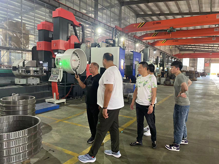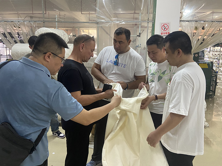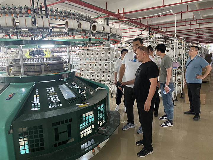近日,來(lái)自海外的客戶應(yīng)邀到漢馬大圓機(jī)生產(chǎn)車(chē)間進(jìn)行實(shí)地考察,公司負(fù)責(zé)人高海彬、王偉明等人熱情接待遠(yuǎn)道而來(lái)的客人。