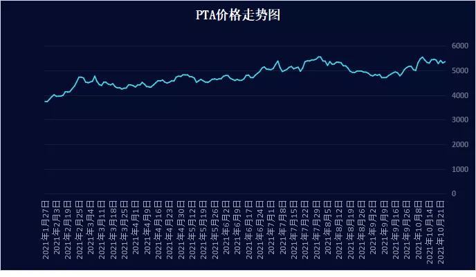 受動力煤影響,上游化纖原料PTA、乙二醇、滌綸長絲等聚酯產(chǎn)品價格開始出現(xiàn)回調(diào)現(xiàn)象。PTA在上周沖高后連續(xù)下跌,期貨價格較10月15日下降80元/噸。2021年四季度以來,滌綸長絲價格震蕩上揚,遠超2019-2020年同期價格,在10月中旬達到近期最高值。但隨后開始出現(xiàn)下跌,目前震蕩運行,似乎漲勢結(jié)束。從下圖的曲線圖中我們也可以看到下跌趨勢,原料價格踩下上漲剎車,或恢復低價。