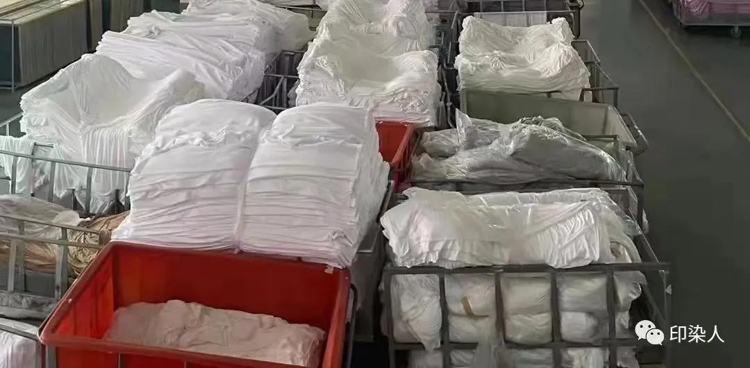 即使目前染廠不再限產(chǎn),但產(chǎn)能上升也需要過程,并且前期擠壓的訂單一時間也難以快速釋放,因此短期內(nèi)限產(chǎn)結(jié)束也未能完全改善擁擠的狀態(tài)。如今的印染廠爆倉嚴重,坯布堆至馬路上,生產(chǎn)被壓卡,排隊染色,交期長達20多天。