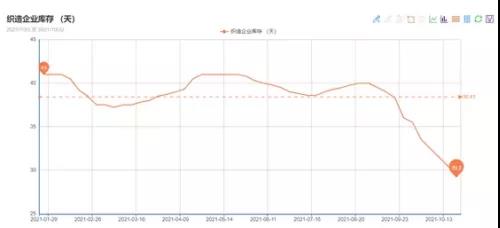 由于產(chǎn)能的下降,疊加“銀十”訂單的到來,織造庫存在短期內(nèi)得到了一次大釋放。主營春亞紡的凌經(jīng)理跟我們說:“我們主要做訂單,但是市場貨也有在做,像我們春亞紡做的很多,這幾天我們這春亞紡都已經(jīng)庫存不多,市場上也確實應該緊張了?!敝鳡I功能性面料的陳經(jīng)理和我們說道:“我們這庫存不太多了,現(xiàn)在走貨很通暢?!敝鳡I春亞紡的翁總表示:“我們做現(xiàn)貨的,庫存要有一定的存量,基本在一個月吧,比前期走貨確實是好轉(zhuǎn)了,庫存下降了很多?!?/span>