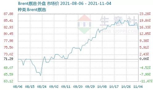 伊朗核問題談判有望在于11月底重啟,美國商業(yè)原油庫存連續(xù)兩周增長,供應(yīng)擔(dān)憂緩解,國際油價(jià)大幅下跌,創(chuàng)近兩個(gè)月來的最大跌幅。11月3號(hào)NYMEX原油期貨12合約80.86跌3.05美元/桶或3.63%;ICE布油期貨01合約81.99跌2.73美元/桶或3.22%。