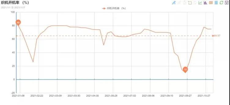部分地區(qū)目前限電暫時(shí)取消了,本以為訂單會(huì)正常一些,但是紡織老板們卻言:“更少了!”雖然大部分企業(yè)能夠滿開,也有一些機(jī)器較多的廠家開7成以上,但本周盛澤地區(qū)織造開工率下滑至75%左右。