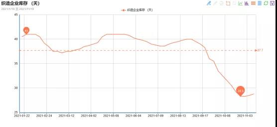 終端紡織市場(chǎng)隨著購(gòu)物節(jié)熱度的過去,“圣誕節(jié)”、“雙十二”的訂單也已基本制作完畢,目前新訂單偏少,而這些訂單又恰逢限電限產(chǎn)的風(fēng)頭,社會(huì)庫存大幅去化,目前根據(jù)綢都網(wǎng)的數(shù)據(jù)監(jiān)測(cè),織造企業(yè)坯布庫存整體在28.8%左右。庫存的去化,本應(yīng)讓市場(chǎng)上坯布價(jià)格得到上升,而現(xiàn)在坯布價(jià)格卻在慢慢跌下來,其原因還是由于目前行情不是太過積極。