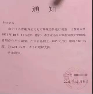江蘇部分地區(qū)電價調(diào)整通知書: