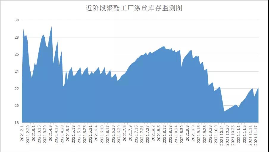 雖然目前聚酯工廠庫存并不是很高,但10月下旬以來,山東、河南、江蘇等地拉閘限電舉措全面放松直至取消,產(chǎn)能迅速恢復(fù)并釋放,部分中小企業(yè)累庫率不斷升高,運轉(zhuǎn)資金被占壓。同時進入年底,紡織企業(yè)現(xiàn)金流需求加大,需要支付零配件、水電費、工資、獎金、貸款及利息,部分企業(yè)采取拋庫存、快變現(xiàn)等手段維持生產(chǎn)。對于原料采購的欲望將變得更加謹(jǐn)慎。因此整體來看,目前市場缺乏利好消息,并不具備大量備貨的天時地利人和之有利因素。