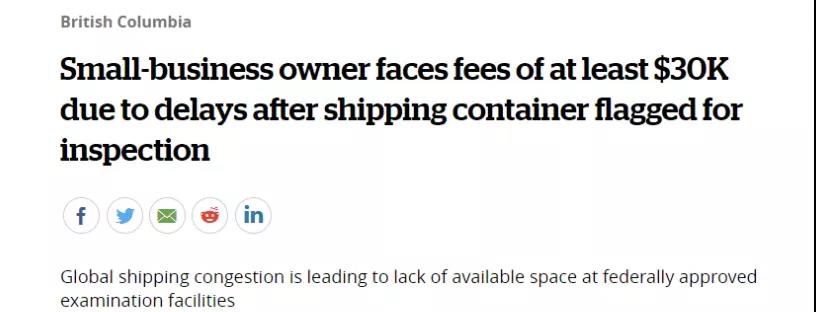 去加拿大的貨物無端被查,產(chǎn)生天價(jià)倉(cāng)租