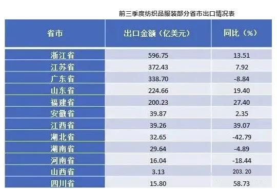 而不容忽視的是,今年以來,在江浙地區(qū)服裝出口迎來穩(wěn)步增長(zhǎng)的同時(shí),中西部省市出口表現(xiàn)卻異常突出。據(jù)測(cè)算,1-9月,我國(guó)西部地區(qū)出口紡織品服裝123.7億美元,同比增長(zhǎng)23.9%,占我國(guó)紡織品服裝出口市場(chǎng)的5.4%;