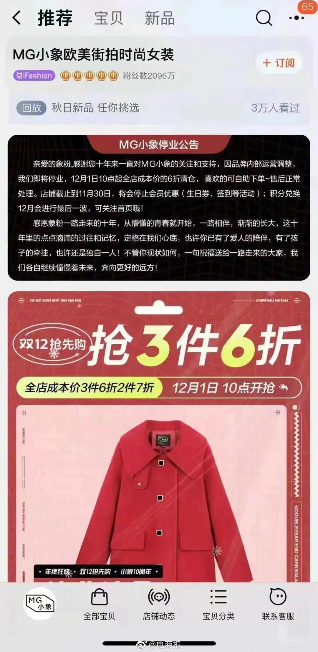 #淘寶#2000萬粉絲的女裝皇冠店:#毛菇小象#竟然停業(yè)了!據(jù)了解知名女裝店:毛菇小象(MG小象)要停業(yè)了。