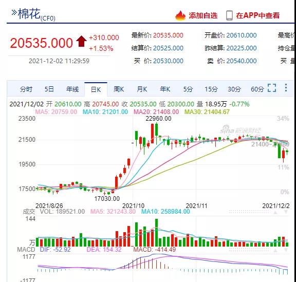而本次大幅的下跌,主要原因來自于下游訂單的萎縮,下游企業(yè)觀望氣氛比較濃厚,包括受整個國際大環(huán)境的影響。據(jù)專業(yè)人士預(yù)測啊,棉紗價格還有1000~2000元每噸的下探空間。而就在1號上午,鄭棉期貨還在繼續(xù)走低,盤中一度跌破2萬元,走勢還是非常弱的。