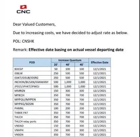 從一些東南亞船公司的最新漲價(jià)通知來(lái)看,漲幅確實(shí)不小。蛇口港至泰國(guó)曼谷、林查班港,漲價(jià)USD350/700/700;蛇口至仁川釜山等港口,直接漲價(jià)USD500/1000/1000。
