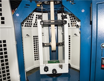 不論是針筒與針盤同步回轉(zhuǎn)而三角座固定的羅紋機(jī),還是三角座回轉(zhuǎn)而針筒與針盤固定的羅紋機(jī),都從導(dǎo)紗器引入紗線,由針筒舌針形成正面線圈,針盤舌針形成反面線圈。一根紗線在緯向交替編織正反面線圈,以形成羅紋組織。